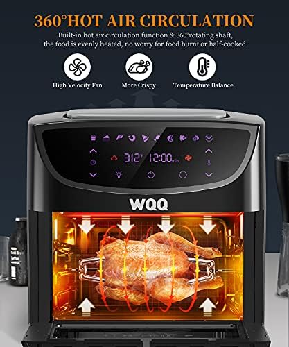 ????【ALL in ONE MACHINE with 20 QT LARGE CAPACITY】 WQQ air fryer does all of it by multiplying the rotisserie oven, microwave oven, toaster, dehydrator, sizzling air oven and electrical griddle in a single. As much as 5 layers of grills could be positioned in (dehydration mode), 20 quart tremendous giant measurement is right for the entire household or celebration